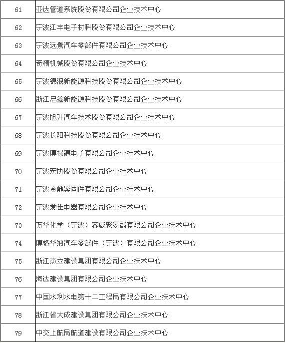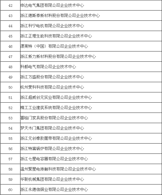 附件:浙江省2017年(第二十四批)擬認定為省級企業技術中心名單