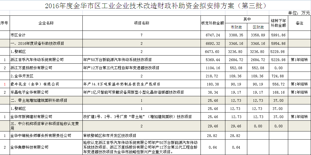 詳見附件:2016年度金華市區工業企業技術改造財政補助資金擬安排方案。