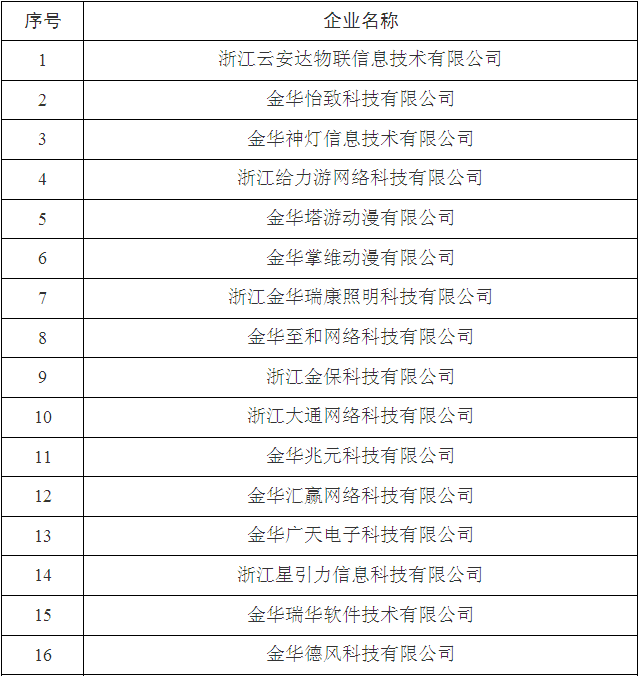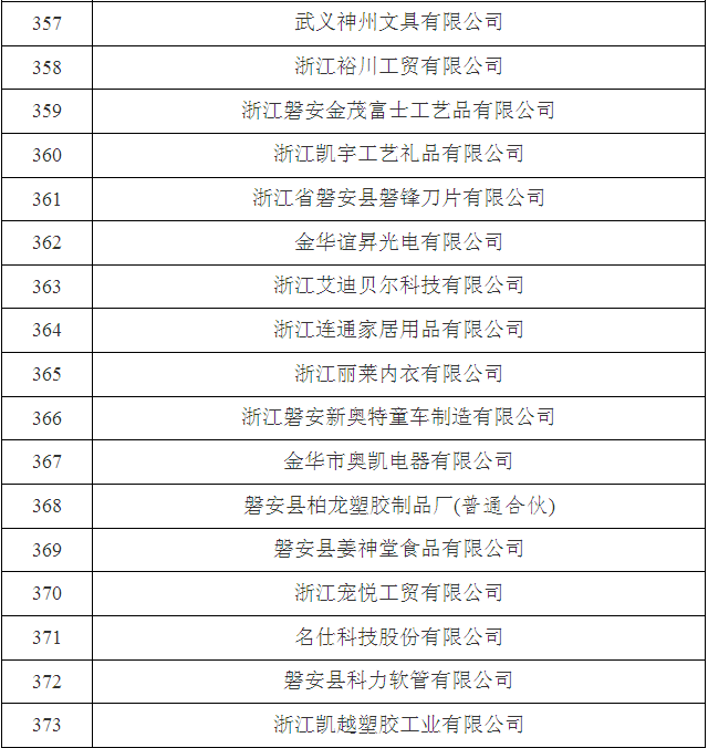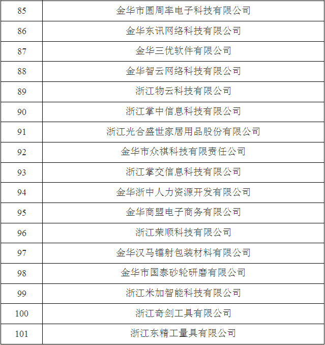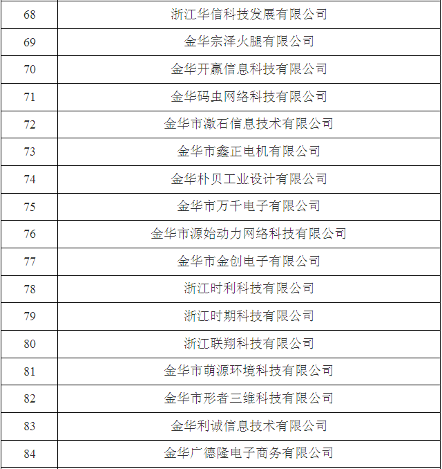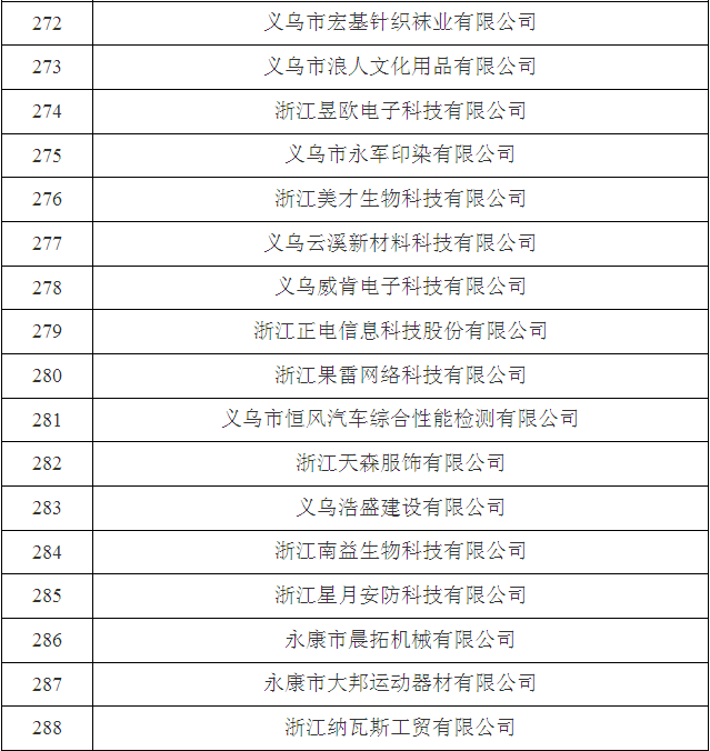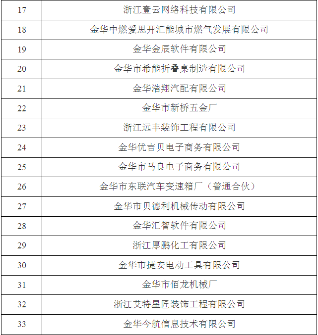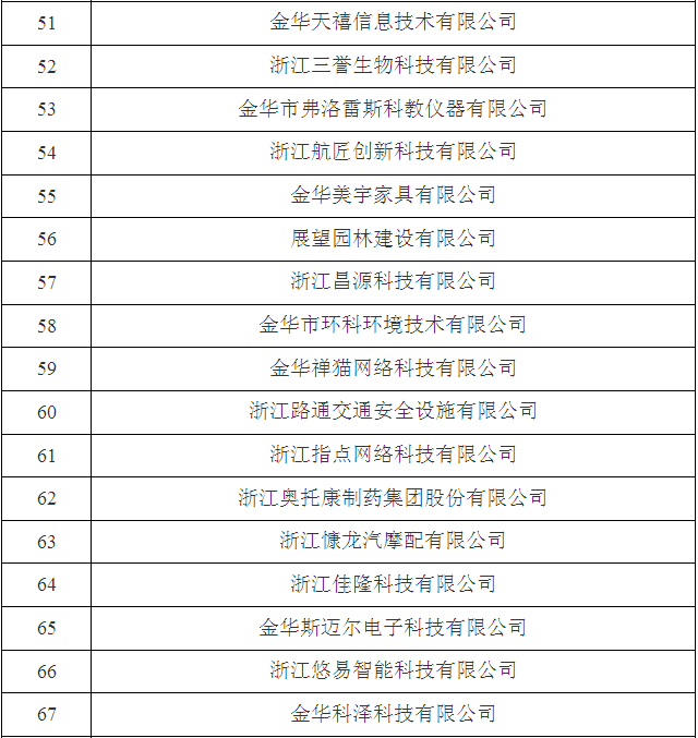 2017年金華市第三批省科技型中小企業名單