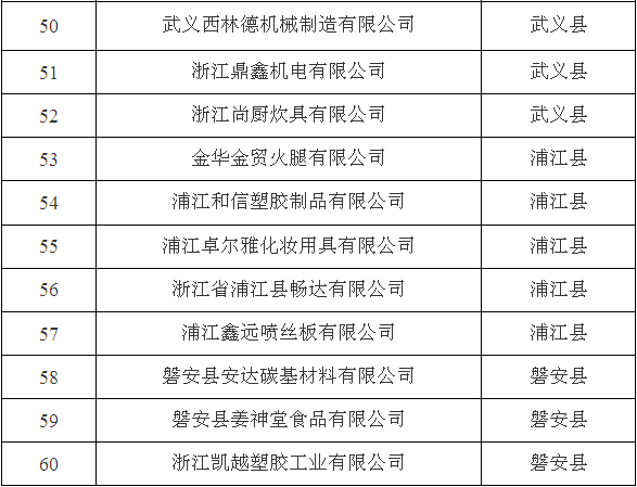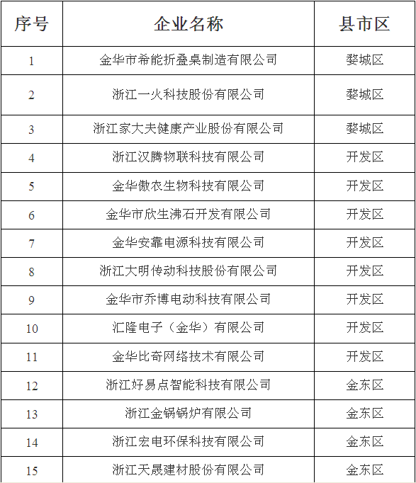 根據《金華市專利示范企業認定與管理辦法》(金政發〔2004〕132號,金政發〔2008〕70號修改)文件精神,在各縣(市、區)科技管理部門推薦的基礎上,經材料審查、專家評審,擬認定金華市希能折疊桌制造有限公司等60家企業為2017年金華市專利示范企業,現予公示,接受社會監督,公示期從2017年11月16日至22日止。如有異議,請來人來電反映。