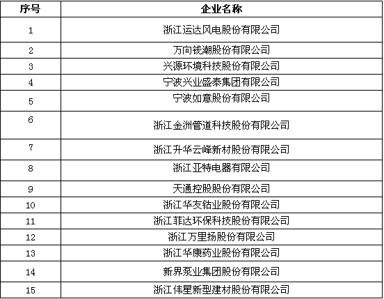 根據《浙江省技術創新示范企業認定培育實施方案(2016-2018年)》《關于組織申報2017年浙江省技術創新示范企業和第二批優秀工業新產品(新技術)的通知》(浙經信技術〔2017〕206號),經各地推薦、審查,省經信委和省財政廳確定萬向錢潮股份有限公司等15家企業為2017年擬認定浙江省技術創新示范企業(附件),現予以公示。