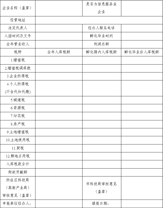 1. 2017年度市區科技孵化政策獎勵申請表;