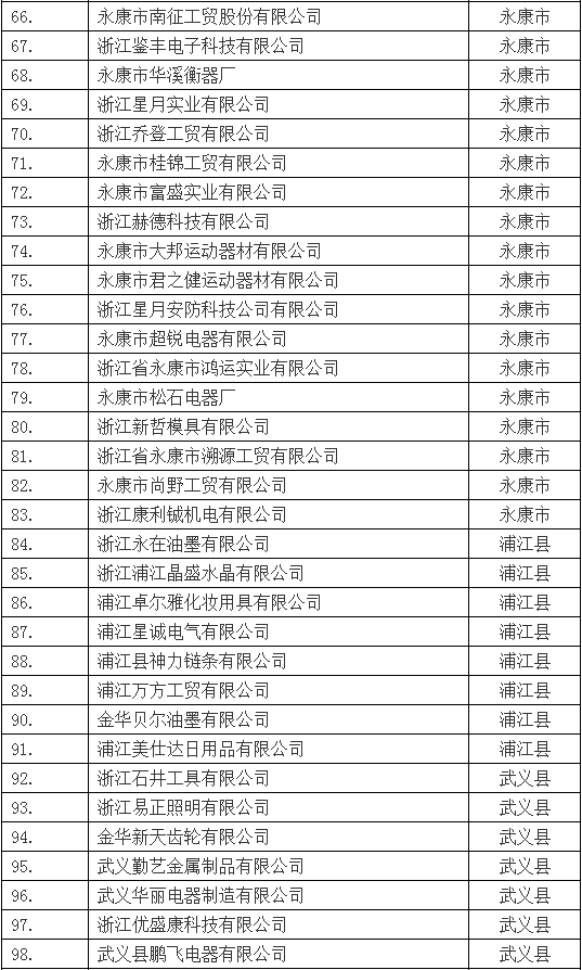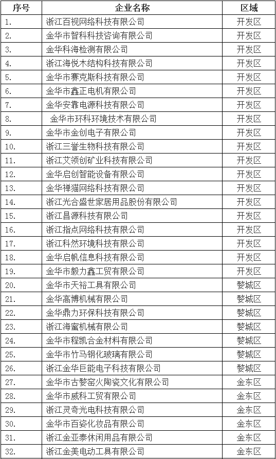 2018年浙江省高成長科技型中小企業推薦匯總表