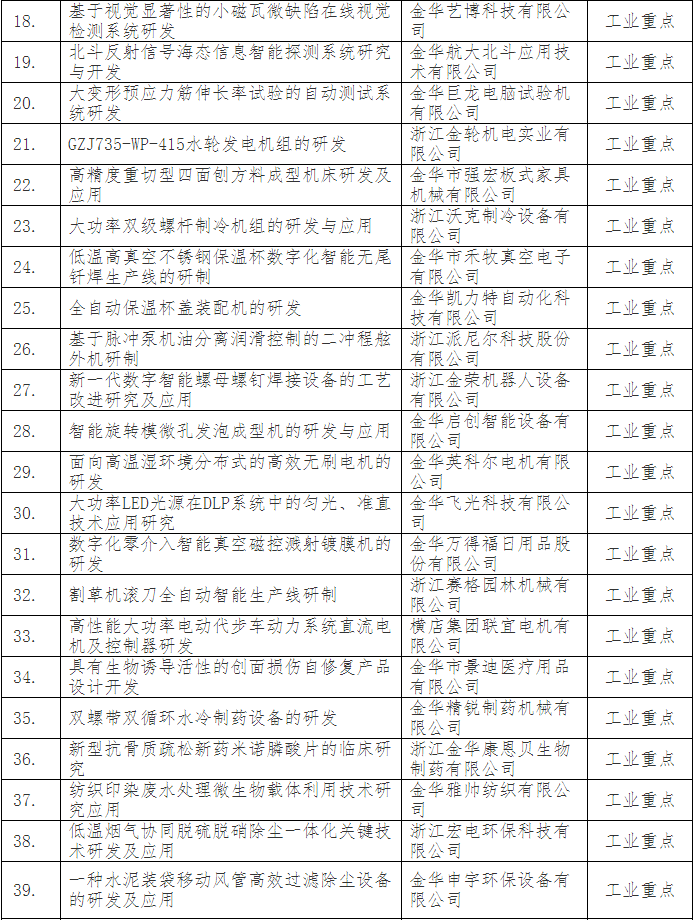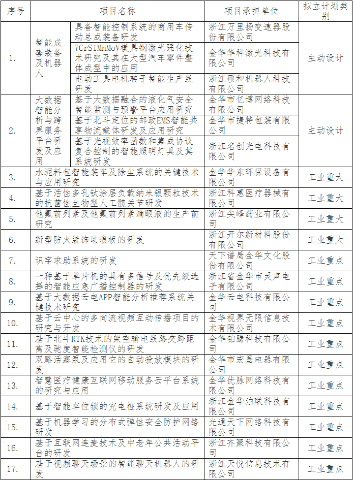附件:1. 2018年金華市重點研發計劃擬立項目(工業類)