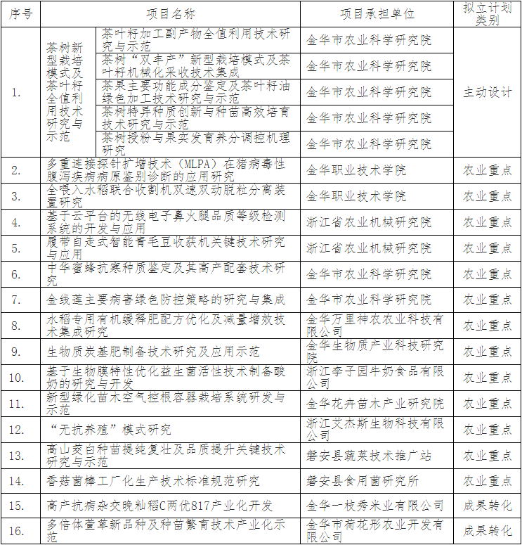 2. 2018年金華市重點研發計劃擬立項目(農業類)