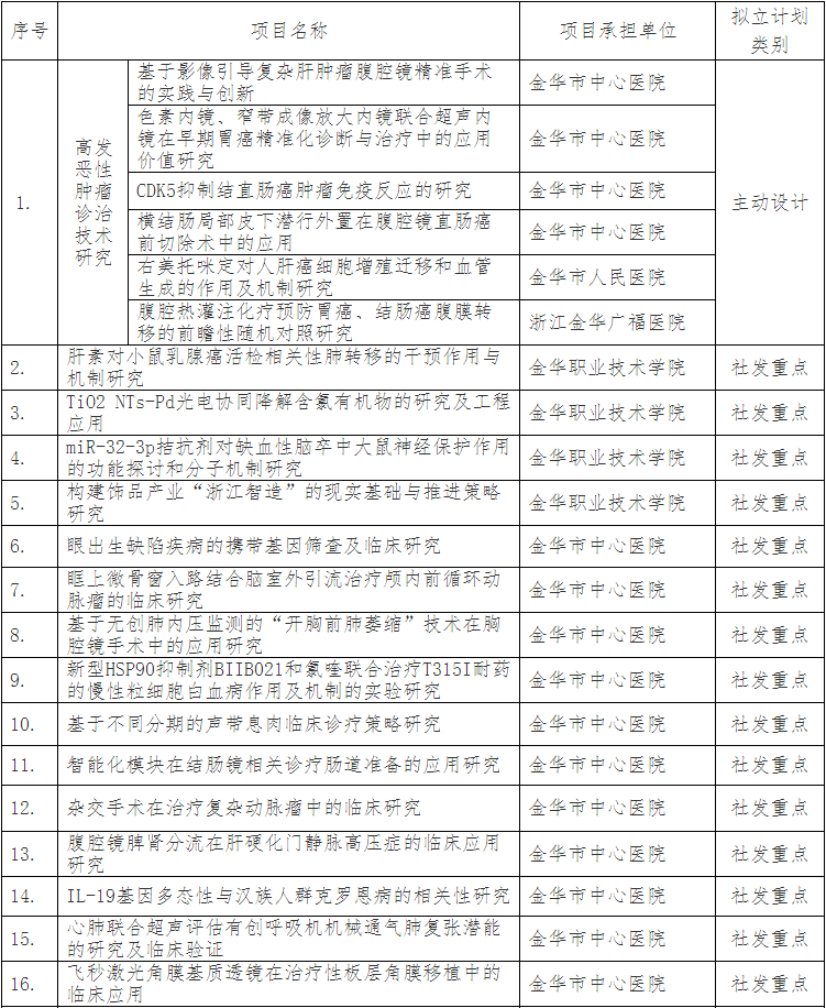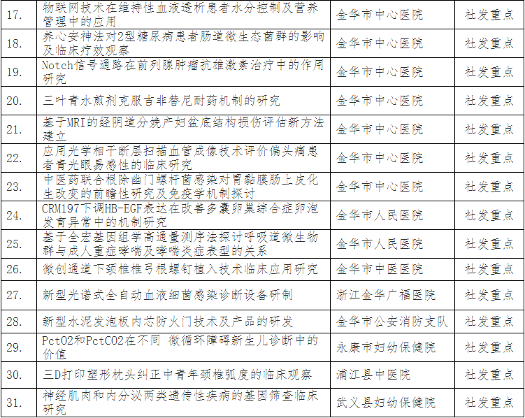 3. 2018年金華市重點研發計劃擬立項目(社發類)
