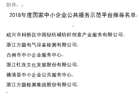 附件:2018年度國家國家中小企業公共服務示范平臺推薦名單