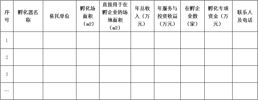 (一)各地科技主管部門要按照“省級以上高新區國家級科技企業孵化器(備案眾創空間)全覆蓋、各市、縣(市、區)市級、省級科技企業孵化器(備案眾創空間)全覆蓋”的要求,加強科技孵化器的培育建設,認真做好審核把關和推薦工作。