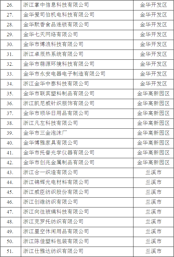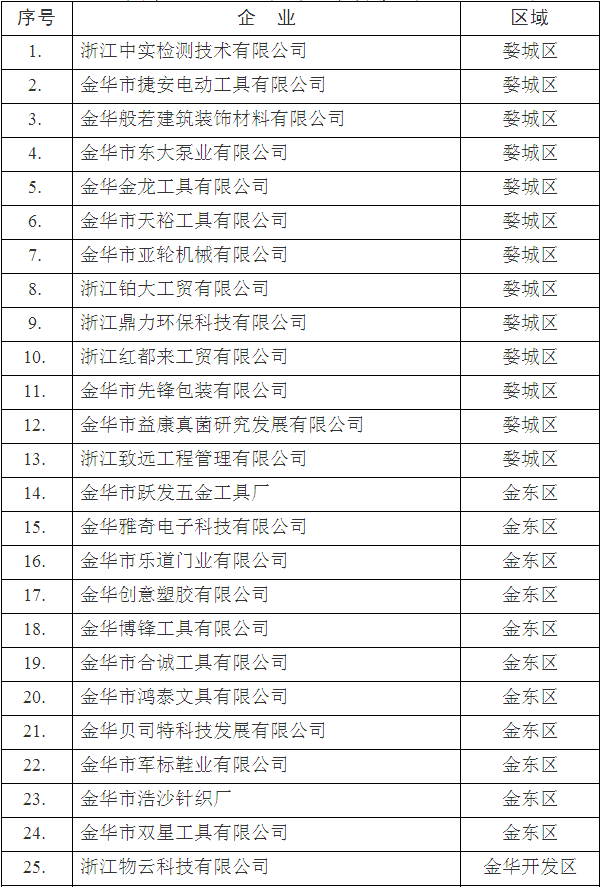 根據《金華市人民政府關于印發金華市高新技術企業認定與管理辦法》(金政發〔2009〕92號)規定的條件和程序,報經市人民政府批準,認定“浙江中實檢測技術有限公司”等103家企業為2018年第二批金華市高新技術企業。