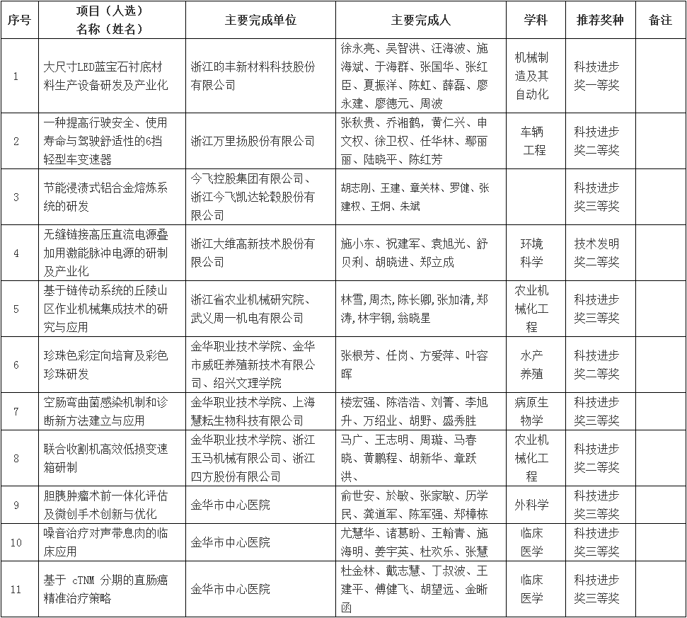 附件:1.2019年度金華市區推薦省科學技術獎申報項目匯總