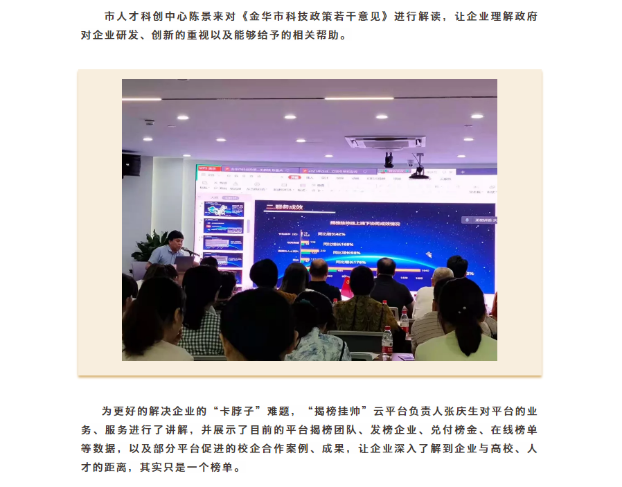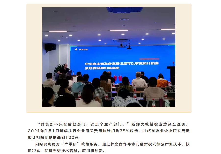為進一步加強企業研發項目登記管理,幫助企業掌握自主研發立項的思路、方法和系統操作,引導創新主體加大R&D研發投入,解讀企業研發經費加計扣除等科技政策。6月21日,在市科技局的指導下,市人才科創中心聯合婺城區和蘭溪市,組織2021年企業自主研發立項線上線下專場培訓會在浙中科技大市場暨“揭榜掛帥”服務中心順利召開。此次參加線上、線下培訓人員共計160人左右。浙中科技大市場和金華市高新技術企業協會具體承辦。