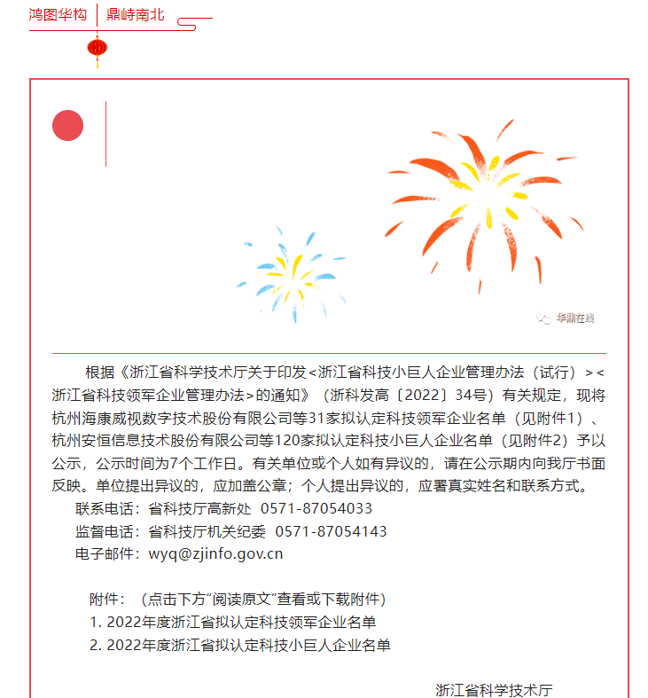 關于2022年度浙江省擬認定科技領軍企業、科技小巨人企業名單的公示