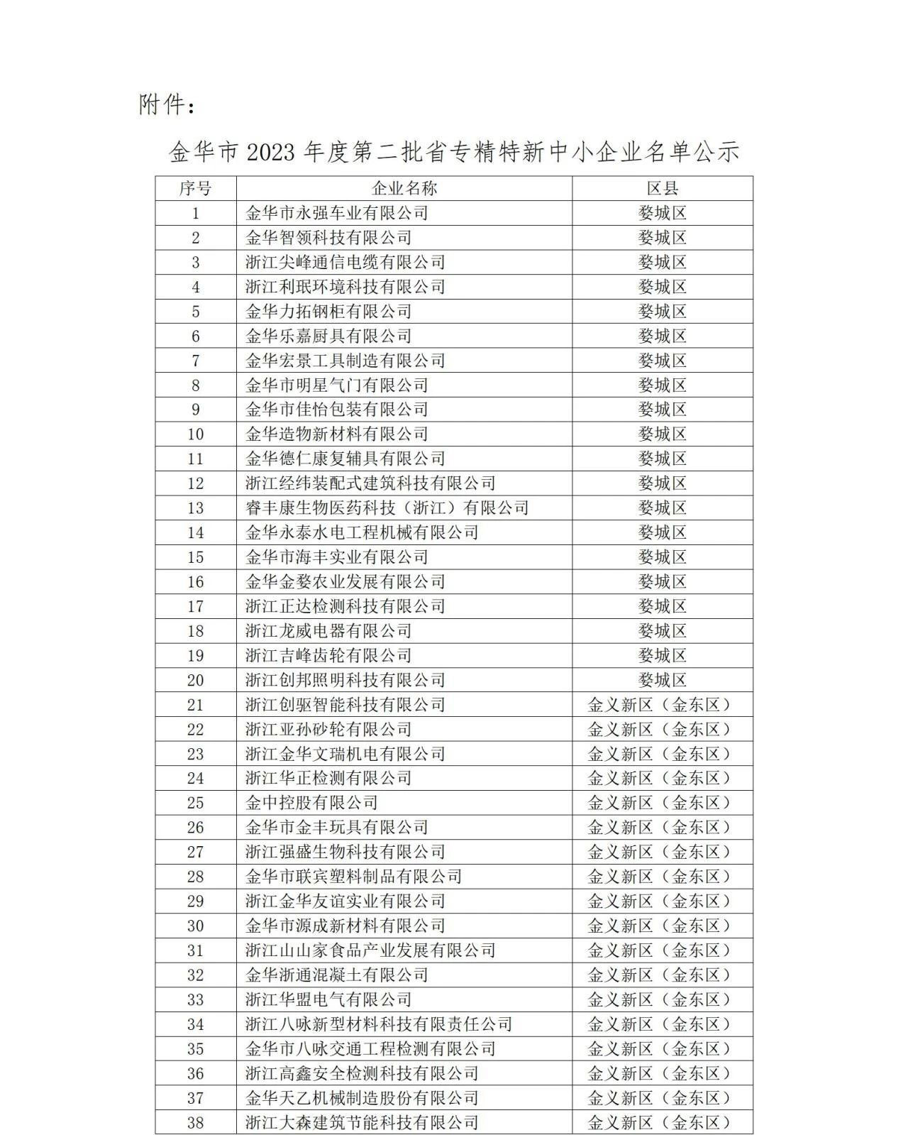附件:金華市2023年度第二批省專精特新中小企業名單公示